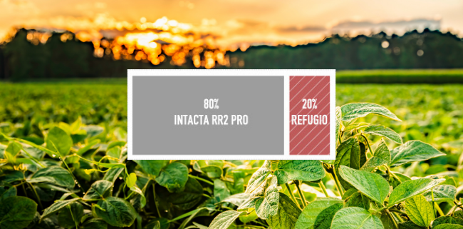 El REFUGIO es una porción de la chacra o del campo sembrado con una variedad de soja que no contenga el gen Bt, lo que permite que los insectos susceptibles puedan reproducirse y mantener una población “susceptible” numerosa capaz de diluir los posibles insectos “resistentes” sobrevivientes en INTACTA RR2 PRO y así mantener baja la frecuencia de los insectos resistentes. INTACTA RR2 PRO es una tecnología que incluye tolerancia al herbicida glifosato y protección ante las principales plagas lepidópteras del cultivo a través de una proteína Bt. Por lo tanto esta tecnología debe ser utilizada bajo las buenas prácticas de manejo recomendadas por el Sistema Roundup Ready Plus y por el Programa de Manejo de Resistencia de Insectos.